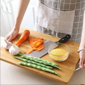 Fabricada em bambu, a superfície possui menor porosidade em comparação a madeiras convencionais, o que contribui para a higiene, reduzindo a absorção de líquidos e odores. Este material oferece resistência a cortes superficiais, prolongando a vida útil do produto. A alça incorporada em aço inox proporciona um manuseio seguro e confortável, além de resistência à oxidação e facilidade na higienização, permitindo pendurar o item para secagem ou armazenamento.