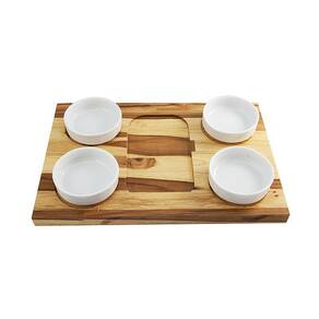 Tábua para petisco petisqueira quadrada com 4 cumbucas primewoodA petisqueira da primewood é um produto ecológico de madeira teca, que é de altíssima qualidade, beleza e funcionalidade.A madeira teca é considerada uma madeira nobre, por isso é comumente utilizada na criação de peças de luxo e extremamente elegantes.Além disso, possui alta durabilidade, vem com 4 cumbucas de cerâmica e tem um espaço no meio da tábua para você colocar torradinhas ou outro petisco.Junte a família e os amigos e desfrute dos petiscos com essa linda petisqueira.Características:- fabricante: primewood- material: madeira teca e cerâmica- medidas aproximadas cxlxa : 33 x 22 x 4,5 cmConteúdo da embalagem:- 01 petisqueira de madeira- 04 cumbucas de cerâmica