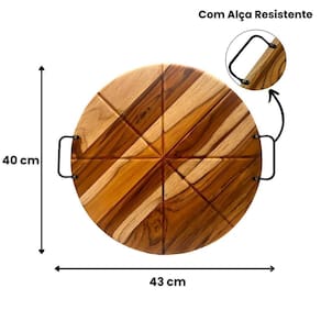 Aquele momento de sentar à mesa para degustar uma deliciosa pizza com amigos e familiares ficará ainda mais especial com esta Linda tábua confeccionada em madeira Teca. A qualidade e cores da tábua impressionam, dando um toque requintado e charmoso. Possui sulcos arredondados para facilitar ainda mais a limpeza e higienização. A madeira Teca é de reflorestamento com alta resistência, fácil secagem uma peça ecologicamente correta Possui proteção antibacteriana, que inibe a proliferação de bactérias e microorganismos.