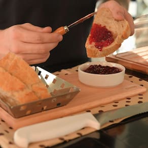 Garantia: 90 dias / Peso: 609g / Cor predominante: madeira / Referência: 7898952413800 Dimensões: 17cm (C) x 15cm (L) x 5cm (A); Dimensões da tábua: 17cm (C) x 15cm (L) x 1,8cm (A); Dimensões da molheira: 8,5cm (D) x 3cm (A); Capacidade: 130ml; Dimensões do cesto: 14cm (C) x 12cm (L) x 3cm (A); Materiais: madeira de eucalipto (tábua), porcelana (molheira) e aço inox (cesto).