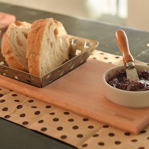 Detalhes do produto: - Composto por três peças, sendo: uma tábua, uma molheira e uma cesta para servir batata frita ou petiscos; - A tábua possui rebaixos para encaixar a molheira e o cesto, evitando acidentes; - Feita em madeira de eucalipto reflorestada.