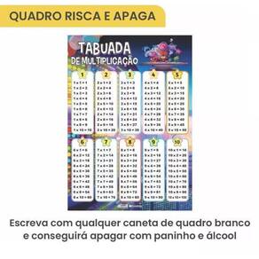 Com um design claro e colorido, este quadro tamanho A4 exibe a tabuada de 0 a 10, tornando o aprendizado dos fundamentos da multiplicação simples e divertido.