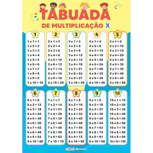 1. Facilita a Memorização: Com a tabuada completa de 0 a 10, as crianças podem facilmente consultar e memorizar as multiplicações, fortalecendo suas bases matemáticas.