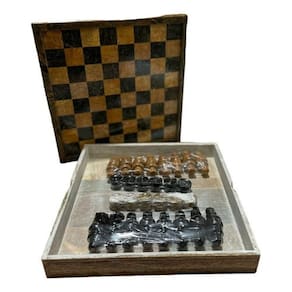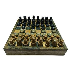 Eleve seu Jogo a Novas AlturasApresentamos nosso exclusivo Jogo de Xadrez em Pedra-Sabão, uma fusão perfeita de elegância, arte e intelecto. Cada peça é esculpida à mão com a maior atenção aos detalhes, transformando o clássico jogo de estratégia em uma peça de exposição deslumbrante.Beleza DuradouraA pedra-sabão, conhecida por sua durabilidade e toque suave, dá vida a este conjunto de xadrez, garantindo que cada partida seja não apenas um desafio mental, mas também uma experiência estética. A textura única e as veias naturais da pedra-sabão tornam cada conjunto exclusivo, com seu próprio conjunto de cores e padrões.Um Toque de ElegânciaSeja para jogar, decorar ou presentear, este jogo de xadrez é um verdadeiro tesouro. Colocado na sala de estar, escritório ou biblioteca, ele adiciona um toque de sofisticação e é um ponto de conversa garantido.Presente Perfeito para o Entusiasta do XadrezProcurando o presente ideal para aquele amigo ou familiar apaixonado por xadrez? Surpreenda-os com algo que vai além das expectativas: um jogo que eles vão valorizar tanto pela jogabilidade quanto pela arte.Medidas:- Comprimento: 22 cm- Largura: 22 cm- Altura: 5 cm- Peso: 3,250 kgIMPORTANTE: Por se tratar de um produto artesanal em Pedra, pode haver pequenas diferenças de cores e tonalidades.