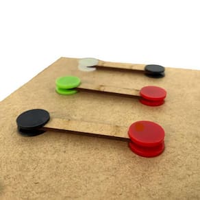 - 1 Tabuleiro de 31x21cm feito em MDF Cru com pontos de acrílicos coloridos e 8 unidades de pares de pontos feitos em MDF e acrílico colorido. Ean: 2960005591263