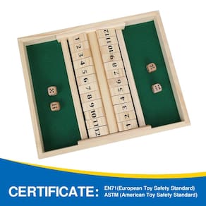 Nosso jogo ecológico foi cuidadosamente feito de madeira premium e feltro verde, com 24 blocos articulados. A madeira adequada para a floresta é durável e oferece um acabamento superior. Shut the Box da Gothink é um jogo de pensamento clássico para adultos e crianças! Este jogo de mesa para 2 jogadores não é apenas uma ótima atividade educacional para introduzir as crianças à contagem. jogos de estratégia e pensamento crítico, também é uma atividade noturna fantástica para adultos. Compacto, ideal para viagens e construído a partir de madeira resistente, este antiquado A atividade de mesa é um jogo duradouro que toda a família vai adorar jogar por muitos anos. Oferece horas de diversão em qualquer lugar - ideal para reuniões de família, festas e entretenimento ao ar livre. Estimula a inteligência e ajuda a pensar O presente ideal para os amantes de jogos de quebra-cabeça, ajuda idosos, adultos e crianças a pensarem, ótima ferramenta para aprender adição básica, pode usar mais combinações de números, melhora a adição de matemática das crianças. Habilidades de aprendizagem de subtração, multiplicação e divisão, contém regras de jogo simples que você também pode personalizar, exercita suas habilidades de pensamento, reação e lógica, mantém o cérebro flexível. Simple Rules of The Dice Game 1. Rolando os dados na superfície de feltro. 2. Escolha peças com base no topo dos dados: 8= 3+5 ou 2+6 ou 1+7 ou 1+3+4 ou 1+2+5 3. Abra os azulejos que você selecionou. Cada jogador joga por sua vez até não conseguir abrir nenhuma peça. E então o jogador sairá e o último será o vencedor. Detalhes Para maiores de 3 anos. Para 1 a 2 jogadores. Dimensões: 30,5 cm x 25,4 cm Peso: 600 g. O pacote inclui: tábua de madeira, 4 dados e manual do produto CERTIFICADO: Nossa caixa fechada passa no teste EN71 (Padrão Europeu de Segurança de Brinquedos) e ASTM (Padrão Americano de Segurança de Brinquedos). Segurança em primeiro lugar! - ?Resistente e bem feito?Feito de madeira de borracha com um tapete de feltro para amortecimento de ruído dentro, este tabuleiro de jogo fecha a caixa mede 30,5 x 25,4 cm e possui 12 blocos de números de flip por lado. Esta atividade de mesa antiquada é um jogo duradouro que toda a família vai adorar jogá-lo por muitos anos! - Seguro e durável: esta caixa fechada é feita de madeira de pinho superior, que é resistente e densa, bem construída e suave. A madeira é certificada pelo Forest Stewardship Council (FSC) e atende aos padrões universais de sustentabilidade. Todos os materiais passam no teste seguro de brinquedo EN71 (Padrão Europeu de Segurança de Brinquedos) e ASTM (Padrão Americano de Segurança de Brinquedos). - ?Aprender feito divertido?Este jogo de dados não tradicional é perfeito para crianças e adultos. Com 1-2 jogadores, é ótimo para reuniões de família, festas, piqueniques e muito mais. Jogo familiar clássico que promove pensamento estratégico, habilidades matemáticas e competição amigável entre jogadores de todas as idades. É uma ótima maneira de ensinar habilidades básicas de adição na sala de aula. Principalmente um dos melhores jogos de matemática para crianças. - ?JOGO APLICÁVEL E POPULAR?Este jogo não é apenas uma ótima maneira de ensinar habilidades matemáticas, mas também é uma maneira divertida de melhorar as habilidades sociais e a comunicação. É um jogo de bar clássico que ainda é jogado em todo o mundo hoje e certamente proporcionará horas de entretenimento. Ótimo jogo familiar para reuniões, festas e feriados, proporcionando diversão sem fim e criando memórias duradouras. - ?Compre sem riscos e melhore continuamente?Nosso produto é cuidadosamente inspecionado em estrita conformidade com os requisitos de qualidade especificados. Garantimos totalmente nossos produtos com a melhor satisfação. Ao mesmo tempo, a qualidade e o desempenho dos produtos serão continuamente melhorados e otimizados de acordo com a opinião do cliente.