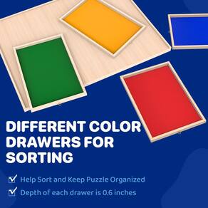 - Capa protetora e 4 gavetas coloridas - Nosso tabuleiro de quebra-cabeça possui quatro gavetas deslizantes, permitindo que você classifique convenientemente as peças do quebra-cabeça por cor, tema ou borda. Mantenha suas peças bem organizadas ao montar seu quebra-cabeça. Cada gaveta é cuidadosamente projetada com uma alça, garantindo uma abertura fácil e garantindo que nenhuma peça falte.