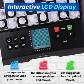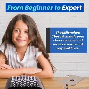 O clássico, agora aprimorado: desempenho incomparável ao preço perfeito. Apresentamos o ChessGenius aprimorado – onde desempenho e valor se encontram em perfeita harmonia. Procurando por um parceiro de xadrez que esteja sempre pronto para jogar e possa ir aonde quer que você vá? Com o ChessGenius, você obtém um dos computadores de xadrez mais avançados de todos os tempos, alimentado pelo renomado software ChessGenius. Seja você um jogador de torneio experiente ou um iniciante completo, você pode personalizar a dificuldade para combinar com seu nível, garantindo um parceiro de xadrez perfeito para jogar e treinar. Novo para 2024: agora com um aumento de 25% na velocidade de cálculo e uma impressionante força de jogo de 2.050 ELO, você sempre enfrentará um oponente formidável. O design atualizado inclui sensores de pressão suaves e responsivos e um conjunto elegante de peças magnéticas com duas rainhas extras, oferecendo jogabilidade fácil e um visual elegante. A ChessGenius oferece tudo o que um entusiasta de xadrez poderia querer – puro prazer de xadrez, portabilidade e durabilidade imbatível. - Leve suas habilidades de xadrez para o próximo nível – o computador de xadrez eletrônico avançado Chess Genius foi projetado para desafiar e ajudar você a melhorar seu jogo de xadrez, não importa sua experiência. O professor de xadrez de IA integrado guiará você sobre como melhorar seu jogo. - Leve o xadrez aonde quer que você vá: o tamanho compacto de 28 cm e a bateria AA o tornam portátil e perfeito para viagens. Leve-o com você no carro, nas férias, na escola ou na casa de um amigo. O tabuleiro de xadrez magnético ajudará a manter suas peças de xadrez no lugar. - Movimentos de xadrez facilitados – Com a tecnologia HighSensitive da Millennium, pressione levemente o tabuleiro e a tela LCD guiará você em cada movimento. O conjunto de xadrez eletrônico Chess Genius sugere boas jogadas, dicas, devoluções e movimentos legais. - Níveis de jogo variáveis: do iniciante ao especialista, o computador de xadrez inteligente Chess Genius ajuda você a crescer do básico para níveis mais altos de jogo. Ajuste o desafio à medida que suas habilidades se desenvolvem. - Visor LCD interativo – o quadro digital possui uma tela retroiluminada que mostra claramente todos os movimentos legais e oferece tutoriais úteis. O LCD oferece sugestões e comentários interativos, tornando divertido e fácil dominar seu jogo de xadrez.