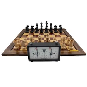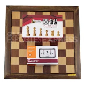 Desvende a essência do xadrez com este Conjunto de Xadrez Oficial feito de madeira nobre. Este kit não é apenas um jogo, mas uma peça de decoração refinada que embelezará qualquer ambiente. O tabuleiro é uma obra-prima da marcenaria.As peças de Xadrez meticulosamente esculpidas. Relógio Analógico perfeito para torneios, práticas diárias ou como peça de coleção. Características Especiais:Tabuleiro: Um tabuleiro marchetado com lâminas de imbuia e marfim, casas oficiais de 5x5 cm e acabamento envernizado que ressalta a beleza natural da madeira.Peças Grandiosas e Detalhadas: Com o rei imponente de 10 cm, as peças chumbadas garantem estabilidade, enquanto o feltro protege o tabuleiro de arranhões, promovendo um movimento suave e elegante.Relógio Analógico Clássico: O relógio analógico segue as normas da FIDE e adiciona um elemento de sofisticação e funcionalidade, essencial para jogos competitivos e treinamento sério. Este conjunto é recomendado para entusiastas e profissionais que apreciam não apenas o jogo, mas a arte do xadrez. Cada partida é elevada a um evento especial com este conjunto, que promete durabilidade, precisão e uma experiência de jogo sem igual. Dimensões e Peso do Tabuleiro e Peças:Tabuleiro: 50 x 50 x 1,5 cmPeças de Xadrez: Altura variável de 5,5 a 10 cm, com diâmetro de base de 28 a 35 mmPeso Total Aproximado: 3 kg