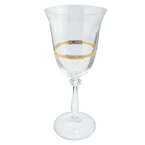 Taça Água Suco 350Ml Ângela Cristal Decorado Friso Dourado