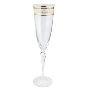Cristal de alta qualidade: Brilho, transparência e durabilidade. Friso dourado decorativo: Toque refinado e elegante à peça. Capacidade ideal: 200ml, perfeita para espumantes e champanhes. Design sofisticado: Formato ergonômico e clássico. Versátil: Ideal para uso individual ou composição de kits.