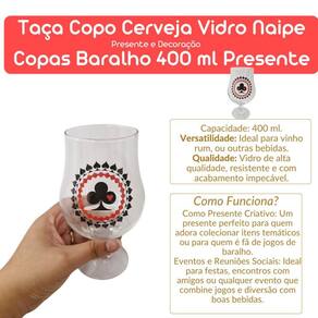 Ideal para quem busca um copo que combine praticidade com estilo. Torne sua próxima experiência de degustação de cerveja ainda mais especial com a Taça Copo de Cerveja em Vidro Naipe Copas Baralho 400 ml