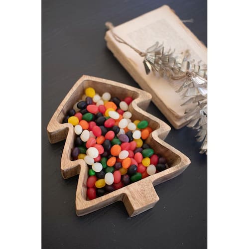 Esta tigela de madeira para árvore de Natal está implorando para ser preenchida com guloseimas. Mostre seus enfeites favoritos, guloseimas saborosas ou bugigangas natalinas nesta tigela esculpida na Índia. Faça desta tigela de árvore de Natal uma peça central de mesa de destaque ou adorno de mesa de console. 8" x 2" x 10" t Código UPC: 841628104875 Limpe com um pano seco e sem fiapos.