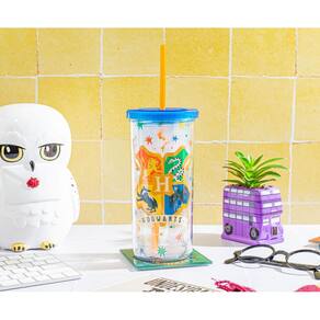 - Faça memórias mágicas: você pode ter perdido sua carta, mas ainda pode obter este copo de viagem mostrando a academia mística. Apresenta o brasão de Hogwarts, refeito em um estilo de desenho animado e acentuado com explosões de estrelas coloridas.