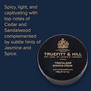 Tigela de creme de barbear Truefitt & Hill - Trafalgar | Smooth Glide para um barbear hidratante incrivelmente próximo, mas confortável, 6,7 onças - SHAVING CREAM BOWL: um dos nossos cremes de barbear à base de glicerina que são uma excelente maneira de obter um barbear incrivelmente próximo e confortável. Embora não seja obrigatório, recomendamos o uso de um de nossos pincéis de barbear de pêlo de texugo para uma experiência de barbear ideal. - TRAFALGAR: Picante, leve e cativante com notas de topo de cedro e sândalo complementadas por notas sutis de jasmim e especiarias. - HISTÓRIA: Truefitt é mencionada em toda a literatura inglesa moderna como um bastião de estilo e serviço da mais alta qualidade - uma tradição que temos orgulho de continuar hoje. - PREPARADOS COM PERFEIÇÃO: Nossos produtos são formulados com uma mistura requintada de essências raras, naturais e sofisticadas. Nossa oferta inclui uma linha completa de produtos de barbear, fragrâncias, cabelo e banho para fornecer uma solução de higiene diária para o homem moderno. - TRUEFITT & HILL: Reconhecida como a melhor barbearia e perfumista masculina tradicional de Londres, oferece aos senhores exigentes apenas o que há de melhor em produtos e serviços de higiene.