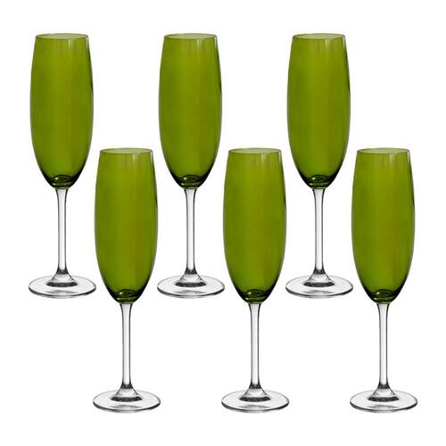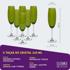 JOGO COM 6 TAÇAS DE CRISTAL VERDES PARA CHAMPAGNE 220 ML LINHA GASTRO/COLIBRI BOHEMIA CRYSTAL