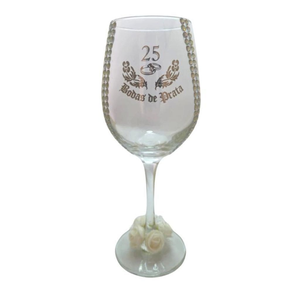 Taça Vidro Bodas De Prata 25 Anos Rosas Casal Vinho