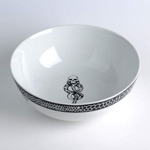 Tigela de servir Harry Potter Comensal da Morte Os fãs do universo Harry Potter desfrutarão de uma conexão mágica sombria com esta tigela temática de Comensal da Morte. Com a Marca Negra dos Comensais da Morte de Voldemort, esta tigela grande para servir é o acessório de cozinha de Harry Potter perfeito para adicionar às suas experiências mágicas de jantar. Combinado perfeitamente com qualquer talheres de Harry Potter ou conjunto de louça que você já tenha, esta tigela de servir será um lembrete constante de que os minions de "aquele que não deve ser nomeado" estão em toda parte! Uma adição essencial de cozinha do mundo mágico de Harry Potter. Simples e elegante, os designs desta tigela de cerâmica são feitos para adicionar uma exibição sutil de the villainous Death Coma suas refeições. Esta tigela de servir grande é perfeita para todas as refeições e todos os fãs de Harry Potter por aí. Colecione este deslumbrante conjunto de pratos grandes com tema de Comensal da Morte para sua coleção pessoal de recordações de Harry Potter ou use-o todos os dias! Os fãs podem até exibir esta tigela durante sua próxima noite de cinema com tema de Harry Potter! Quaisquer que sejam seus desejos mágicos com esta tigela de servir, tenha certeza de que você está servindo do prato Harry Potter da melhor qualidade que mãos trouxas podem fazer!