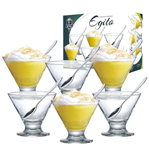 D.L Online Store--------------------------Que tal usar e abusar da criatividade inovando em suas receitas com nossos conjuntos para sobremesa? Temos diversas opções para mousses, pudins, pavês e por aí vai? Surpreenda seus convidados servindo-os em peças de alta qualidade com a elegância que eles merecem, confira nossas opções.Uso: SobremesaMaterial: VidroCapacidade: 225mlDiâmetro: 107mmAltura: 92mmConteúdo da Caixa: 6 conjuntos ( 6 Taças e 6 Colheres)- Peças medidas com o volume máximo até a boca- Pode sofrer variação de até 5% de seu volume- Diâmetro é medido pela largura maior da peça