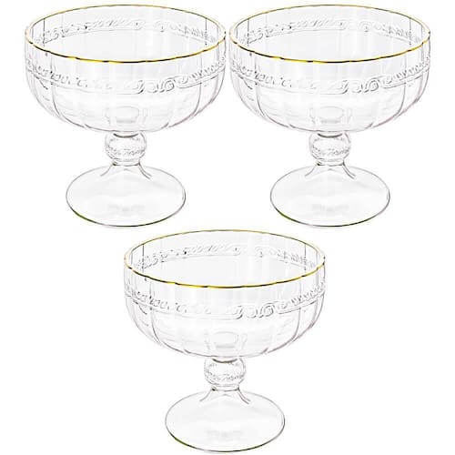 A taça para sobremesa da Lyor é fabricada em cristal, na cor tansparente com borda dourada, de grossa espessura para garantir a durabilidade e qualidade do produto. As taças possuem 200mL de capacidade, 9,2cm de altura e 10cm de diâmetro.