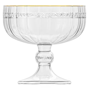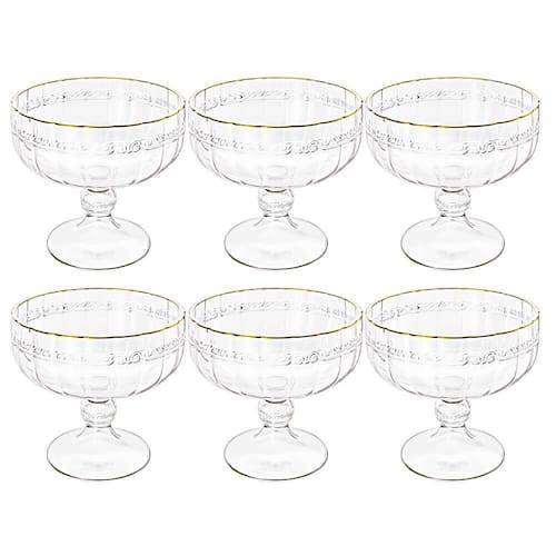A taça para sobremesa da Lyor é fabricada em cristal, na cor tansparente com borda dourada, de grossa espessura para garantir a durabilidade e qualidade do produto. As taças possuem 200mL de capacidade, 9,2cm de altura e 10cm de diâmetro.