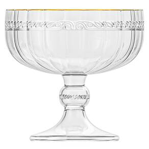A taça para sobremesa da Lyor é fabricada em cristal, na cor transparente com borda dourada, de grossa espessura para garantir a durabilidade e qualidade do produto. As taças possuem 200mL de capacidade, 9,2cm de altura e 10cm de diâmetro.