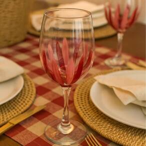 Taça de Vidro Grande 490ml Vinho Água Vermelha Taça Vidro Vinho /Água Decoração Vermelha Artesanal 490 ml - Nadir Figueiredo Produzida em vidro de alta qualidade, com acabamento impecável, une beleza e elegância para valorizar a sua mesa. A taça é pintada de forma industrial e pode ser lavada normalmente sem causar nenhum dano à peça. Características do produto: Produto: Taça / Cálice Indicação: Vinho, Água, Champagne, licor e todas as demais bebidas a gosto Material: Vidro Capacidade: 490 ml pode variar conforme modelo Altura: 15cm aproximadamente Cor: Transparente, decoração vermelha Diferenciais: Design elegante e resistente Acabamento que valoriza a decoração da sua mesa Como usar: Em celebrações, festas e presentes Envio e : Embalagem reforçada para evitar danos durante o transporte Atendimento: Dúvidas Nossa equipe está pronta para responder no campo de perguntas Garanta agora sua taça e receba um item de qualidade Visite a nossa loja para conhecer toda a nossa de linha de taças, copos de vela, esculturas, pedras naturais entre vários outros itens de decoração feitos com muito carinho e respeito. Marca: Não Informado