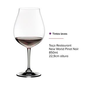 Capacidade: 850ml Medidas: 22,9cm altura Material: Cristal Linha Restaurant Fabricante: Riedel Origem: Áustria Conteúdo: 01 Taça Riedel Restaurant New World Pinot Noir 850ml
