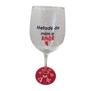 Taça Frase Metade Namorados Amor Casal Personalizada Vinho 490ml - Nadir Figueiredo - Barone