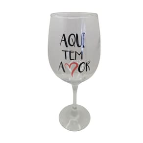 Taça Frase Tem Amor Namorados Personalizada Vinho 490Ml
