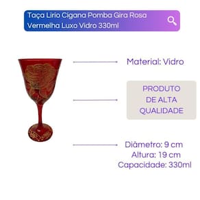 Taça Lírio Cigana Pomba Gira Rosa Vermelha Luxo Vidro 330ml Taça Lírio Cigana Pomba Gira Rosa Vermelha Luxo Vidro 330ml