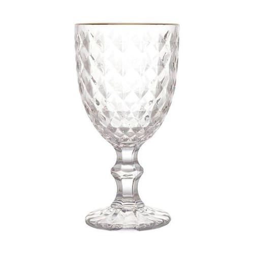 A Taça para Água e Suco Golden tem capacidade de 345 ML, produzida em vidro.