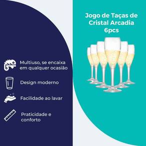 Além de sua beleza, as Taças Arcadia são duráveis e funcionais, projetadas para garantir a estabilidade e resistência ao longo do tempo. Sua transparência impecável e brilho natural realçam a aparência do champanhe, enquanto o design ergonômico proporciona um manuseio confortável. Com 6 peças no conjunto, esse Jogo de Taças é perfeito para servir aos convidados em festas, jantares ou eventos formais, tornando qualquer celebração mais memorável e elegante. Ideal também para presentear, as Taças Arcadia são a opção ideal para quem valoriza qualidade e requinte na hora de brindar.