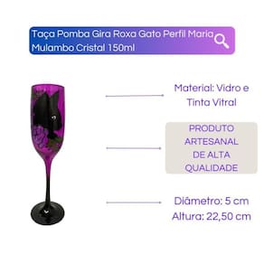 A Taça Pomba Gira da Bialluz é confeccionada em vidro, material que traz elegância a peça sem contar na alta qualidade que possui. Com detalhes luxosos que brilham e cores vivas que deixam a taça ainda mais maravilhosa. Nossa Taça Pomba Gira é muito especial e com certeza trará ótimas energias em sua vida.