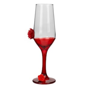 Taça Pomba Gira Luxo Rosa Vermelha Haste Vermelha Champ186Ml