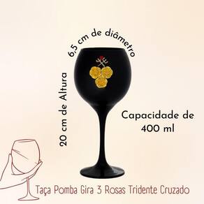 Taça Preta Pomba Gira 3 Rosas Trid Cruz 400 ml 20cm Celebra Celebre a tradição e a beleza com a Taça Preta Pomba Gira 3 Rosas Tridente Cruzado. Esta taça encantadora, com capacidade para 400 ml e uma altura de 20 cm, é uma peça excepcional para rituais, cerimônias ou decoração de alta qualidade. Detalhada com um elegante tridente cruzado e adornada com três delicadas rosas, esta taça incorpora a essência da Pomba Gira, uma divindade venerada em várias tradições espirituais. Material: Vidro