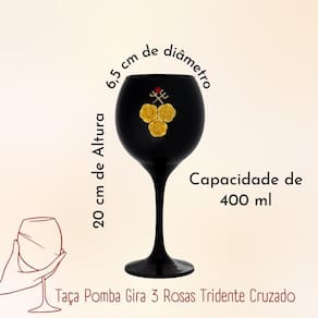 Taça Preta Pomba Gira 3 Rosas Trid Cruz 400 ml 20cm Celebra Celebre a tradição e a beleza com a Taça Preta Pomba Gira 3 Rosas Tridente Cruzado. Esta taça encantadora, com capacidade para 400 ml e uma altura de 20 cm, é uma peça excepcional para rituais, cerimônias ou decoração de alta qualidade. Detalhada com um elegante tridente cruzado e adornada com três delicadas rosas, esta taça incorpora a essência da Pomba Gira, uma divindade venerada em várias tradições espirituais. Material: Vidro Diâmetro: 6,5 cm Tamanho: 20 cm de altura Capacidade: 400 ml Mililitros Ao lavar evitar fricção excessiva para não comprometer o brilho da peça - O acabamento é impermeabilizado para dar mais durabilidade e não comprometer a pintura. Também oferece um bom acabamento com brilho. Imagens meramente ilustrativas Tire todas as suas dúvidas antes de concluir a compra. Iremos responder o mais breve possível. Embalagem de Envio: Caixa de papelão ondulado, plástico bolha. Respostas das dúvidas mais frequentes na ordem: R1: Já realizamos milhares de entregas em todo o Brasil, somos especialistas no que fazemos. R2: Assim que seu pedido for despachado, esta plataforma envia para você o código de rastreamento. R3: Enviamos o produto 100% inspecionado e conferido em nosso checkout e são embalados em embalagem de papelão e plástico bolha. R4: O tempo de entrega irá depender totalmente do seu CEP, todos os nossos produtos saem de Capital. R5: Iremos despachar o seu produto o mais rápido possível, assim que for confirmado pela plataforma, enviamos em até 24h. R6: Nós queremos a sua satisfação, qualquer problema iremos te auxiliar em nossos canais de comunicações. Ean: 7890003943663 Marca: Não Informado