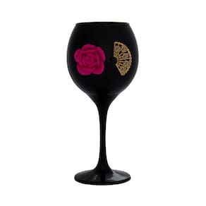 Taça Preta Pomba Gira Menina Rosa e Leque 400ml 20cm Celebra
