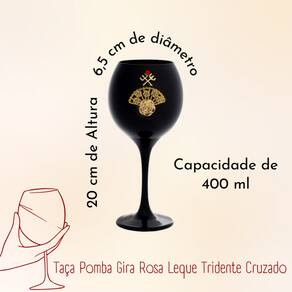 A Taça Preta Pomba Gira Rosa Leque Tridente Cruz da Bialluz é confeccionada em vidro, material que traz elegância a peça sem contar na alta qualidade que possui. Com detalhes luxuosos que brilham e cores vivas que deixam a taça ainda mais maravilhosa nossa taça é muito especial e com certeza trará ótimas energias em sua vida.