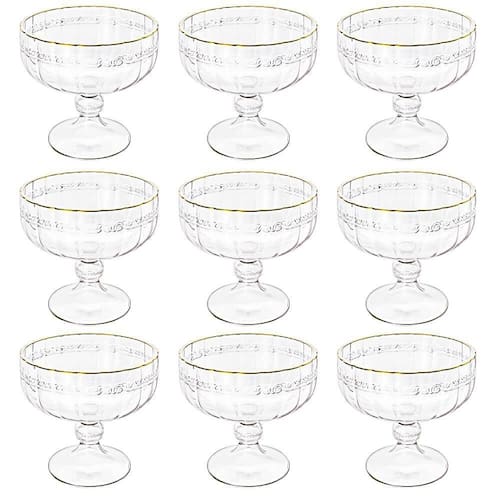 A taça para sobremesa da Lyor é fabricada em cristal, na cor tansparente com borda dourada, de grossa espessura para garantir a durabilidade e qualidade do produto. As taças possuem 200mL de capacidade, 9,2cm de altura e 10cm de diâmetro.