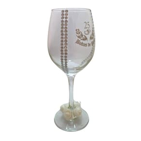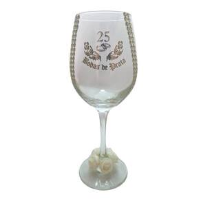 Taça Vidro Bodas de Prata 25 Anos Rosas Casal Vinho Taça Bodas de Prata 25 anos Casal Cristal Personalizada com Rosas Vinho 490ml - Nadir Figueiredo - Barone