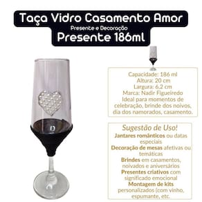 A Taça Vidro Casamento Noivos Presente Amor Brindeé uma peça charmosa e elegante, ideal para brindar momentos especiais com delicadeza e afeto. Com base em formato de coração, é perfeita para celebrações que valorizam o amor e a conexão.