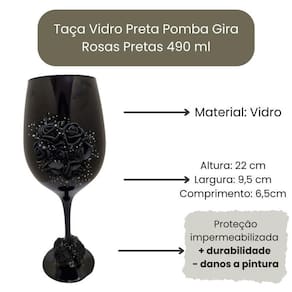 Taça Vidro Preta Pomba Gira Rosas Pretas 490 ml + Presente Adquira esta Taça maravilhosa e ganhe um lindo presente.