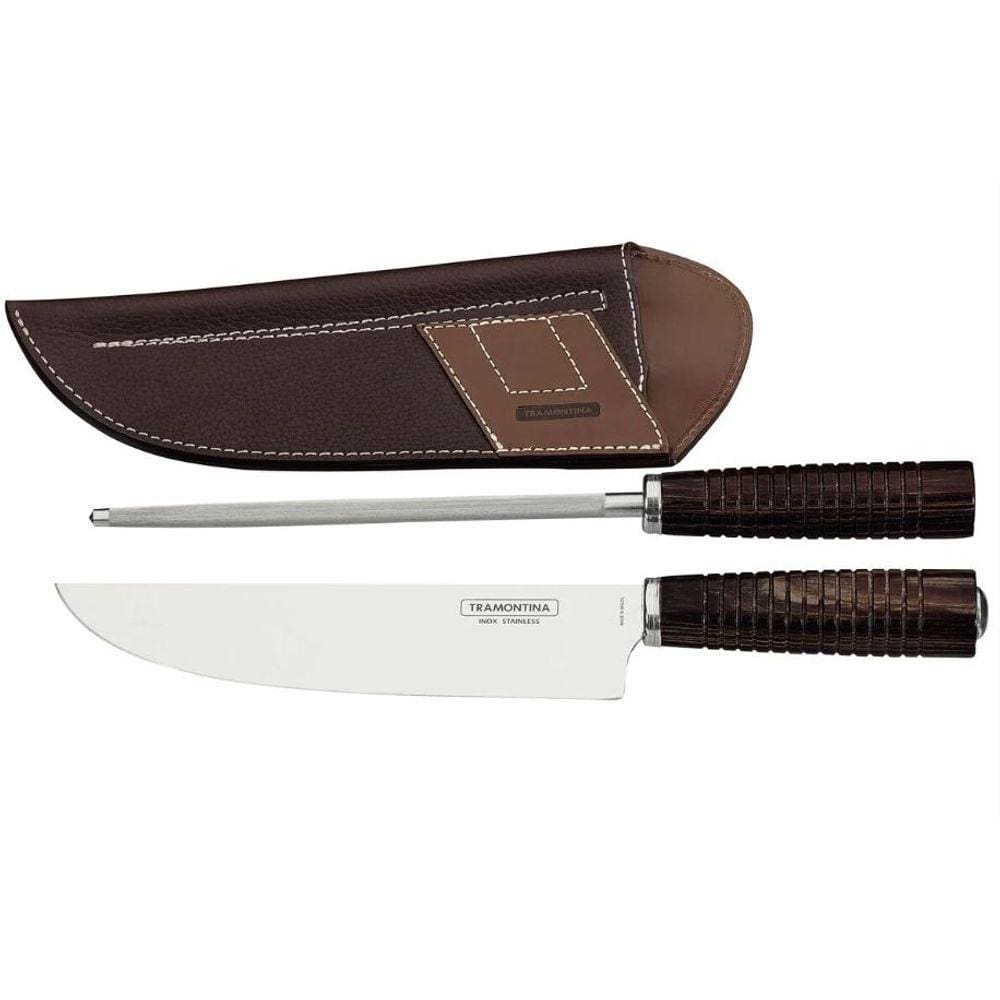 Kit 3 Facas de Churrasco Tramontina Polywood Inox Cabo Castanho