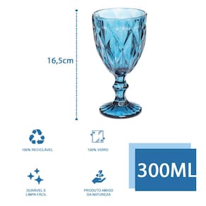 Conjunto 6 Copos Azul Taça Diamante Agua Vinho 300ml