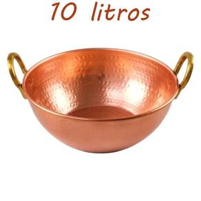 o tacho de cobre faz parte da cultura mineira, ideal para o preparo de doces e comidas temperadas. O cobre é um metal de alta resistência e durabilidade. Com alças em liga de bronze, nossos tachos são artesanais e feitos de cobre puro, preservando o alimento e realçando o seu sabor. Medidas: