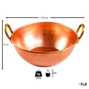 Transforme sua cozinha em um santuário culinário com este magnífico tacho de cobre de 03 litros, adornado com elegantes alças de bronze. Com acabamento martelado feito à mão por artesãos habilidosos, este tacho não é apenas um utensílio de cozinha; é uma peça de arte que traz um toque de tradição e sofisticação ao seu espaço gastronômico.