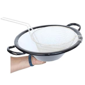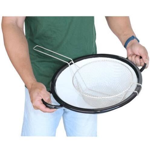 Tacho Esmaltado Para Fritura Peixe Salgado Pastel Com Peneira Kit com tacho de fritura número 14 / 4 litros + peneira de fritura. Tacho esmaltado para fritura, resistente a ferrugens e abrasivos. Alça anatômica Ideal para frituras em geral. Utilizado para fritura de batatas, pasteis, salgados, e muitos outros. Especificações: Material: Ferro Altura: 10cm Diametro: 35cm Peso: 900gr Marca: Shopdapesca
