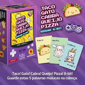 A dinâmica é simples e viciante: fale as palavras Taco, Gato, Cabra, Queijo, Pizza enquanto revela as cartas - se a palavra combinar com a carta, todos devem bater Nesta edição especial 8-bit, novas cartas temáticas com gestos exclusivos tornam tudo ainda mais divertido.