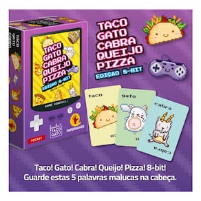 Jogue uma carta enquanto fala uma das palavras. Assim que coincidir uma carta jogada com a palavra falada, corra para bater sua mão na pilha central. O último a bater pega a pilha toda. Seja rápido para ser o primeiro a se livrar das suas cartas e vencer o jogo. Mas cuidado! Esta versão retrô de Taco Gato ativa o modo nostalgia com cartas especiais em clima de videogame: jogue barris, solte bolas de fogo e entre no ritmo do bip bup – tudo isso antes de bater na pilha! Prepare-se para apertar os botões e colocar seus reflexos à prova. Taco Gato 8-bit é um tributo aos clássicos dos videogames e garante ainda mais risadas, caos e desafios para sua turma. Press start e divirta-se!